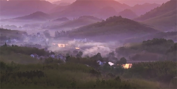 远山村落晨雾中 近日,安徽省池州市贵池区罗城村,薄纱般的晨雾中,村落、树木、峰峦若隐若现,如梦似幻,让人流连忘返。
