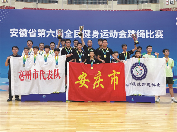 安徽省第六届全民健身运动会跳绳比赛30秒单摇、双摇、1分钟一带一单摇男子团体赛第一名