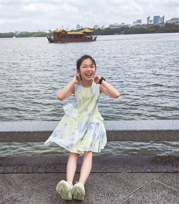 7月底的一天,妈妈带我去游览了心心念念的西湖。站在湖边,我终于真切感受到语文书中苏轼写的“风光不与四时同”的意境。西湖的水清澈见底,四周大树枝繁叶茂,枝头上不时有松鼠窜来窜去,灵动又可爱。第一次被这样的大自然温柔拥抱,我心里满是欢喜。微风吹过湖面泛起涟漪,清新的空气让人沉醉。这如画的美景来之不易,需要我们每个人用心守护。
