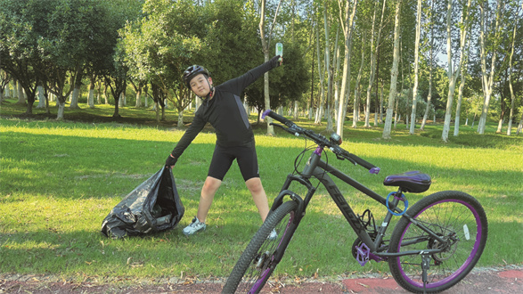 暑假里,我用独特方式为环保注入青春力量:坚持每日骑行30公里,锻炼之余沿途捡拾垃圾。炎炎夏日的公园绿道上,我一次次躬身捡起草丛中的塑料瓶、纸屑,路边的烟头、果皮也不放过,身旁停着我的自行车。汗水浸透衣衫,却浇不灭守护环境的热情。这小小的行动传递着责任与能量,诠释着“低碳锻炼+环保公益”的理念,如清风为夏日添彩,为城市生态文明建设写下生动注脚。