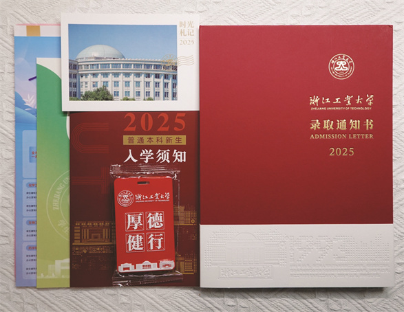 从环保科技到校徽盲盒,浙江工业大学的录取通知书惊喜不断。今年的录取通知书采用烫透工艺,使用微结构模具热压形成,图文0油墨、0溶剂、0染料。不仅生产过程无污染,成品也不含挥发性。三款磁吸校徽随机搭配,科技感满满。从佩戴上校徽的那一刻起,你走的每一步都将是浙工大精神的续写。