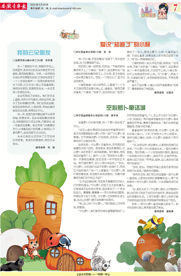《安徽青年报·学生周刊》励志启智,开阔视野,净化心灵,陶冶情操,参与互动,集新闻性、知识性、趣味性、互动性为一体,是小学生成长的良师益友、参与互动的平台、沟通老师家长的纽带。
